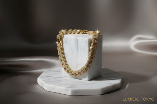 10mm キューバンカーブチェーン キュービックジルコニア パヴェ ブレスレット(I286)